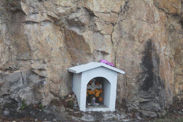 We ascend the narrow passes with the windows open, giving the engine a rest, we descend with the air conditioner running in second gear, sometimes first, providing all the extra resistance possible to slow our controlled fall into the narrow valleys. The smattering of iron crosses and little concrete shrines are positioned in a way that improves the focus of the driver on the things that really matter.